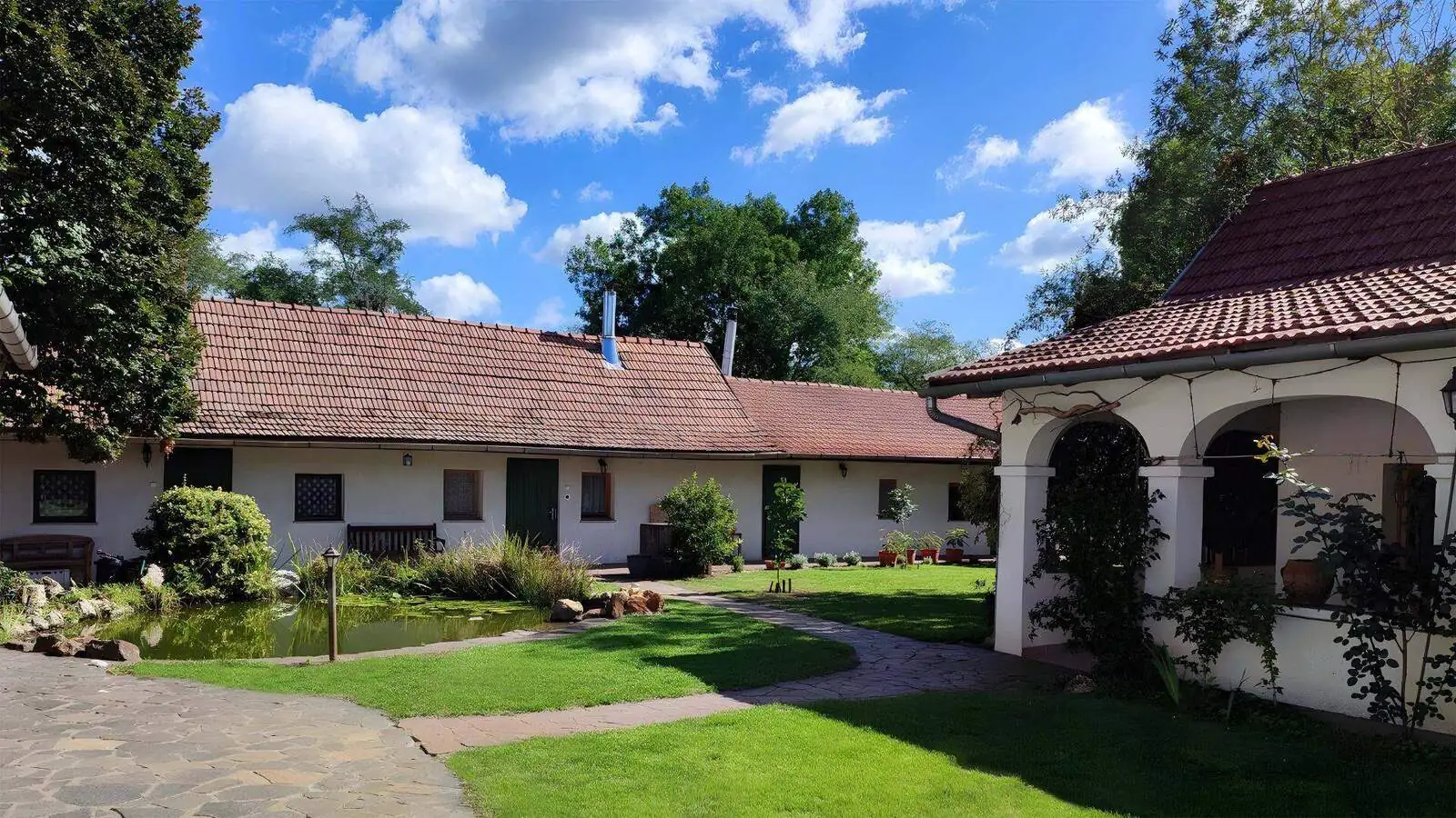 The picturesque pond is about 30 meters long, 15 meters wide, and 2 to 3 meters deep. It is perfect for relaxing and rejuvenating and is suitable for swimming or bathing on hot days. A cozy bench by the shore invites you to watch the beautiful sunset and end the evening with a glass of wine.